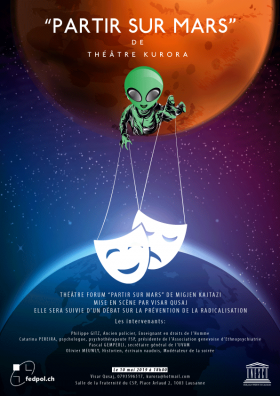 Në këtë prizm të prandalimit të shfaqjeve të dukurive të radikalizimit, Teatri Shqiptar “Kurora” me seli në Nyon të Zvicrës është duke realizuar një projekt të titulluar « Me shku në Mars» .