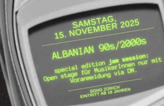 - Albanian 90s/2000s Party rikthehet në Cyrih – Edicion i veçantë “Jam Session”Mbrëmje e paharrueshme në Soho Zürich, me performanca LIVE nga Chip Deva, Valon Muhadri...