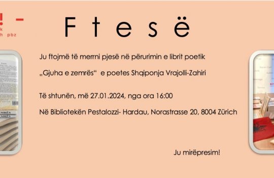 - Në Cyrih promovohet libri “Gjuha e zemrës”, e autores Shqiponja Vrajolli-ZahiriTë shtunën, më 27 janar, në Cyrih do të promovohet libri...
