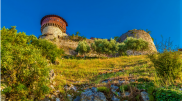 Kalaja e Petrelës, një fortesë mesjetare, pjesë të së cilës mund...