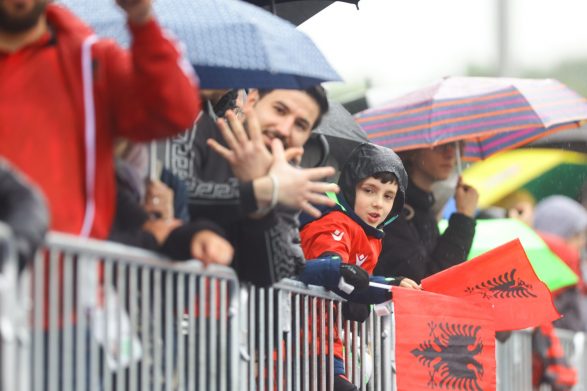 Pavarësisht kushteve atmosferike tifozët shqiptarë ishin të shumtë dhe qëndruan deri në fund për të ndjekur nga afër stërvitjen e kuqezinjve nën urdhrat e stafit teknik dhe trajnerit Silvinjo, shkruan FSHF, transmeton albinfo.ch.