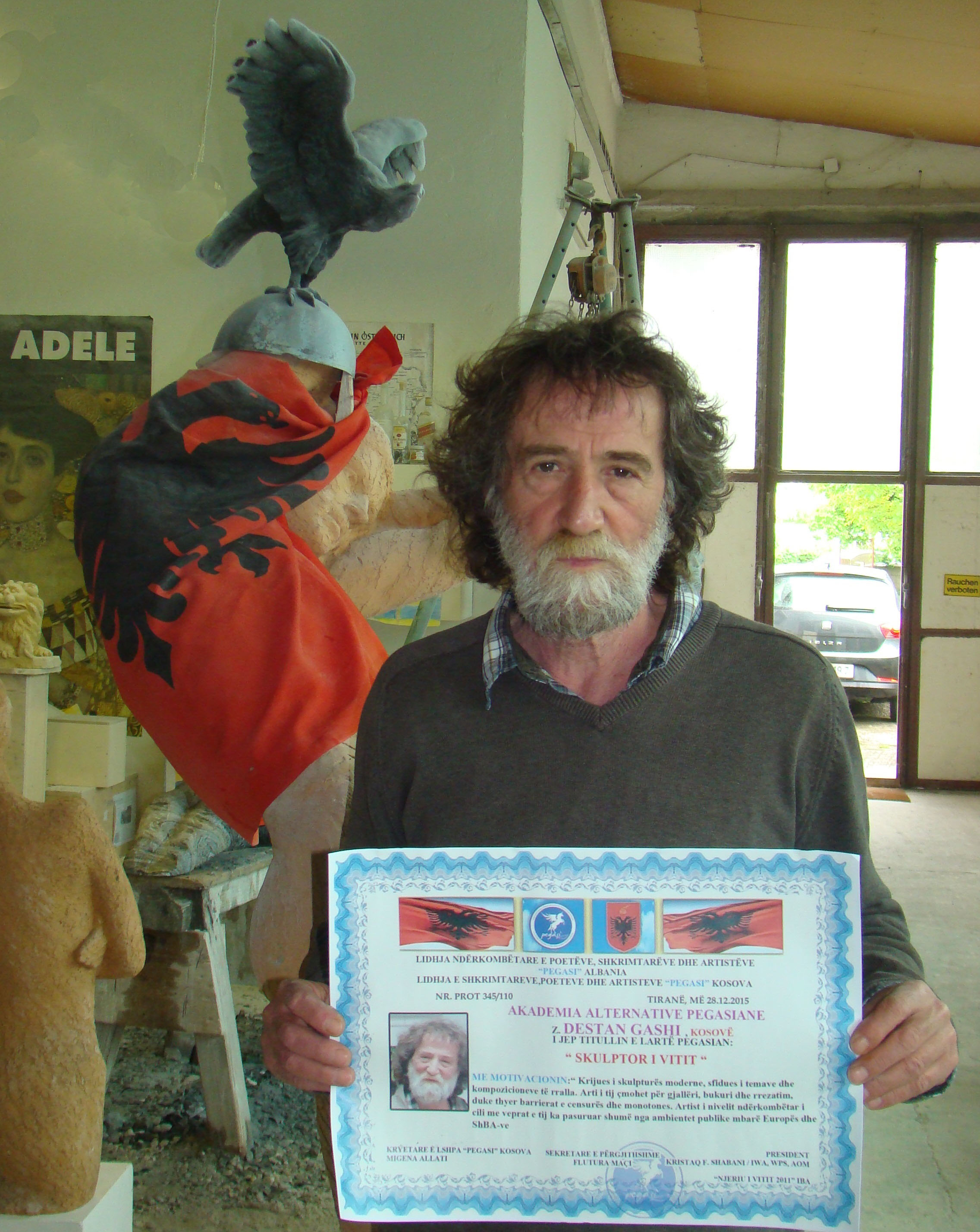 Këtë nuk e kishte menduar. Destan Gashi, një skulptor nga Kosova që jeton në Vjenë dhe ka një atelie në Himberg, u shpall para pak kohe nga shoqata për letërsi, arte figurative dhe teatër „Pegasi“ në Kosovë e Shqipëri „Skulptor i vitit“. Çmimi bazohet ndër të tjera në atë që Destan Gashi është një artisti i rangut ndërkombëtar dhe „shpërthen barrierat e censurës e monotonisë“.