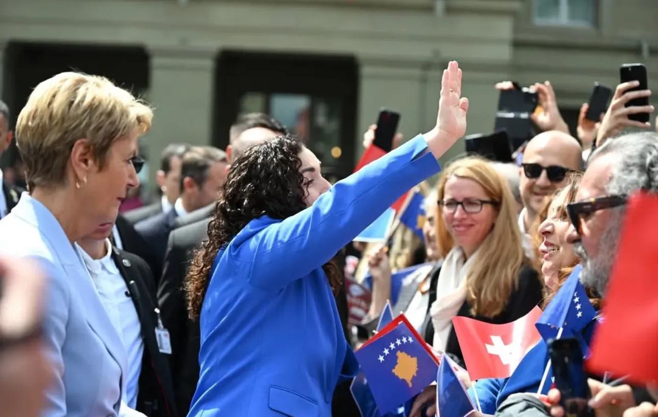 “Zemra jonë rreh mes dy flamujve” – Pritje solemne për Presidenten Vjosa Osmani në Zvicër, me pjesëmarrjen masive të diasporës shqiptare