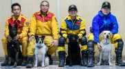 Një qen i njësitit të shpëtimit që mori pjesë në operacionin...