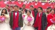 34 çifte kineze, pavarësisht temperaturës jashtëzakonisht të ulët, janë martuar në...