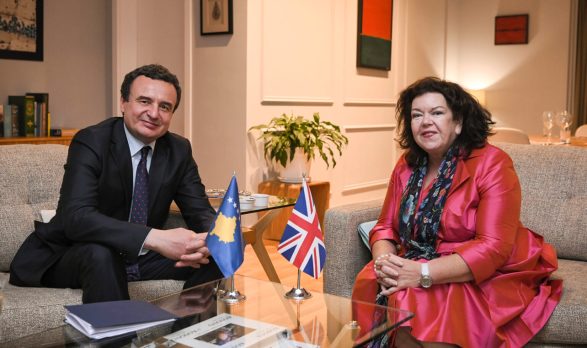 “Kryeministri Kurti dhe emisarja Pierce diskutuan së bashku mbi marrëdhëniet mes Kosovës dhe Mbretërisë së Bashkuar dhe mundësitë për zgjerim të bashkëpunimit duke përfshirë fusha të ndryshme, nga industria kreative dhe diplomacia deri te mbrojtja e siguria” thuhet mes tjerash në komunikatën për media të ZKM-së.