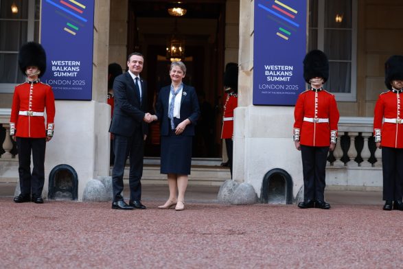 Qeveria e Kosovës ka publikuar fotografi të kryeministrit në detyrë, Albin Kurti teksa është pritur para hyrjes në Samit të Procesit të Berlinit, nga Sekretarja e Shtetit për Punë të Jashtme të Mbretërisë së Bashkuar, Yvette Cooper.