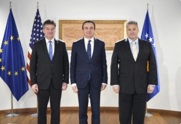 Zyra e kryeministrit të Kosovës Albin Kurti ka njoftuar se gjatë takimit me emisarët e SHBA-së e BE-së për Ballkanin, Escobar e Lajçak u diskutua për dialogun me Serbinë dhe është arritur dakordim që barrikadat e vendosura në rrugët e veriut, duhet të hiqen, transmeton albinfo.ch.