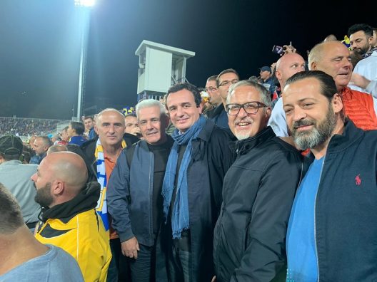 Kandidati për kryeministër nga Lëvizja Vetëvendosje, Albin Kurti, është parë në tribunat e stadiumit “Fadil Vokrri” kur po zhvillohej ndeshja Kosovë – Mali i Zi.