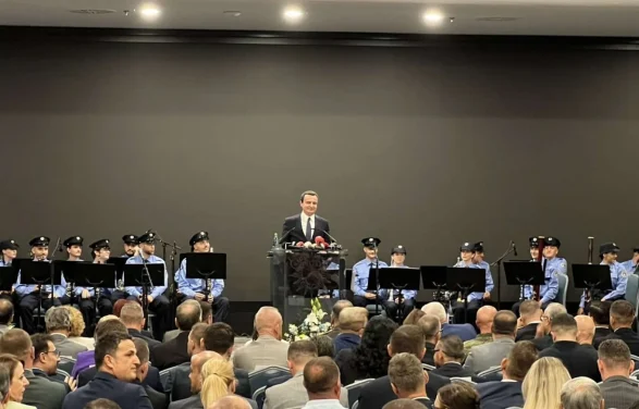 “Urime të gjithëve 25-vjetori i Policisë së Kosovës. Pas përpjekjeve të mëdha të popullit të Kosovës për liri, policia u bë institucioni i parë që me fisnikëri e besueshmëri u shërbeu qytetarëve të vendit, e që në mes dhimbjeve të madha dhe humbjeve nga lufta, sytë i kishte nga rimëkëmbja. Veprimet e policisë sonë në sulmet e njëpasnjëshme në tre vjetët e fundit, nga grupet kriminale të dirigjuara nga Serbia, e veçanërisht në sulmin terrorist të 24 shtatorit të vitit të kaluar në Banjskë të Zveqanit, dëshmojnë me profesionalizëm dhe pasion arrihen rezultate për sundim të ligjit. Banjska ka risjellë në vëmendjen e secilit prej nesh se, pavarësisht çfarëdo aspirate të shfrenuar të kujtdo qoftë mbi Republikën tonë të dashur, territori ynë do të mbrohet edhe me jetë”, tha kreu i qeverisë në ceremoninë e policisë.