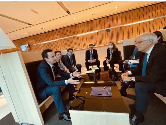 Kryeministri i Kosovës, Albin Kurti në margjina të Samitit BE-Ballkani Perëndimor sot në Brdo të Sllovenisë, takoi shefin e diplomacisë evropiane Josep Borrell.