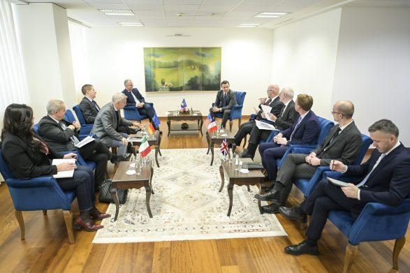 Kryeministri i Republikës së Kosovës, Albin Kurti, i shoqëruar nga zëvendëskryeministri i parë, Besnik Bislimi dhe zëvendësministri i Punëve të Jashtme dhe Diasporës, Kreshnik Ahmeti, takoi ambasadorët e shteteve të QUINT-it dhe Shefin e Zyrës së Bashkimit Evropian në Kosovë.