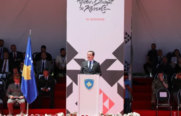 “Ushtria e Kosovës nuk ka qenë kurrë më e madhe e se sot dhe më e mirë armatosur dhe pajisur. Kurrë nuk ka qenë më e stërvitur, trajnuar e shkolluar në akademitë më prestigjioze ushtarake të ushtrive mike perëndimore. Por edhe kurrë s’ka qenë më e fuqishme dhe e gatshme për ta mbrojtur territorin dhe sovranitetin tonë dhe jetët tona, sepse ky është misioni i sa, ta mbrojë Kosovën dhe të zhvillohet e avancohet krahas aleatëve tanë”, ka thënë Kurti.