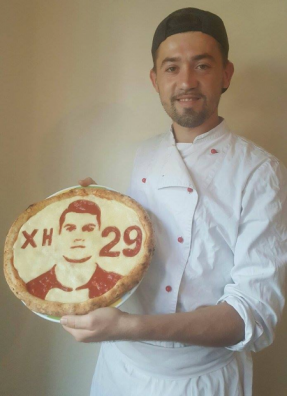 Kuzhinieri shqiptar Agron Thaçi ka bërë një picë me portretin e futbollistit, pas fitores 1:0 ndaj Burnleyt