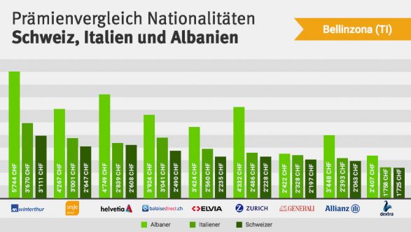 Ndërsa ajo që dihet dhe për të cilën ka shkruar disa herë edhe albinfo.ch, kompanitë e sigurimit të makinave, dallimin në çmimin e sigurimit në baza nacionale e arsyetojnë me vlerësimin e rrezikshmërisë në ngasje të makinave që karakterizon nacionalitetet e ndryshme. Më së rëndi kjo i godet shqiptarët, të cilët për sigurimin e njëjtë paguajnë shumë më tepër se zviceranët.