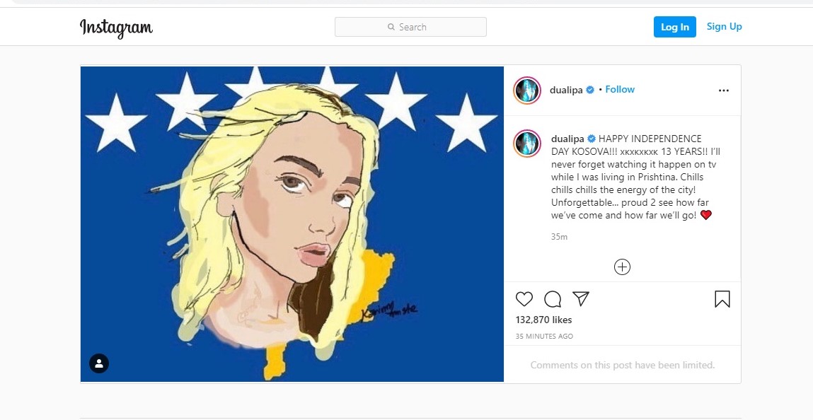 Dua Lipa: Gëzuar Ditën e Pavarësisë, Kosovë!