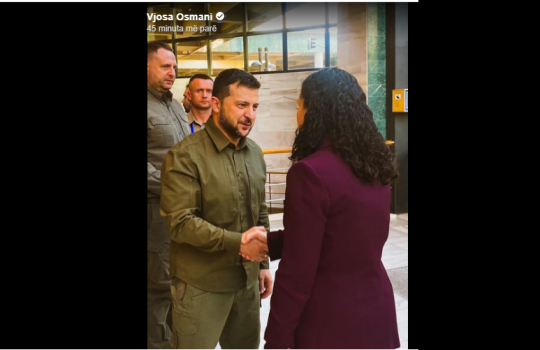 - Osmani shtrëngon duart me Zelenskyn: Qëndresë, stoicizëm dhe shpresëPresidentja e Republikës së Kosovës, Vjosa Osmani, po merr pjesë në...
