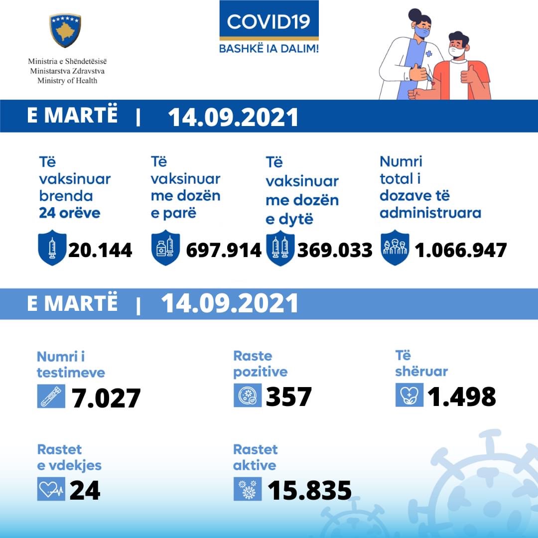 Kosovë, 357 infeksione të reja dhe 24 vdekje
