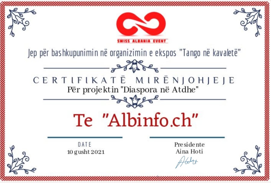 Albinfo.ch vlerësohet për bashkëpunim dhe mbështetje të projektit “Diaspora në atdhe”