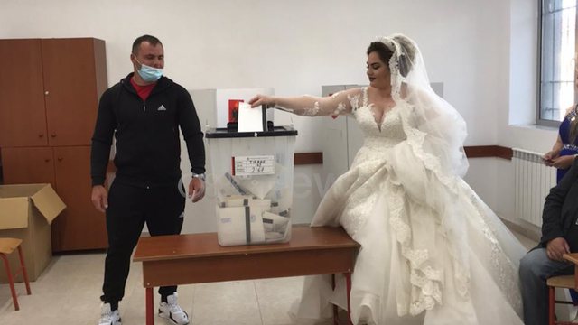 “Së pari vota, pastaj dasma”, nusja, me fustan të bardhë, voton në Kavajë