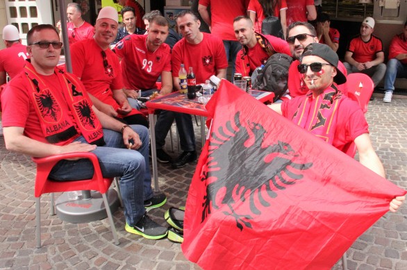 Pak orë para ndeshjes që po cilësohet si historike Shqipëri-Zvicër atmosfera në zemrën e qytetit Lens po i afrohet pikës së vlimit. Tifozët shqiptarë të ardhur nga gjithë Evropa e më gjerë kanë vazhduar festën e filluar nga mbrëmë dhe i kanë dhënë asaj edhe më shumë zjarr e emocion. albinfo.ch është në vazhdimësi në mesin e tyre. Janë së paku dy grupe të mëdha tifozësh që kanë zënë dy nga sheshet në zonën e këmbësorëve në Lens të cilët po këndojnë dhe pothuaj në gjendje transi po shprehin ngazëllimin e tyre me arritjen e kombëtares shqiptare për herë të parë në një kampionat evropian.