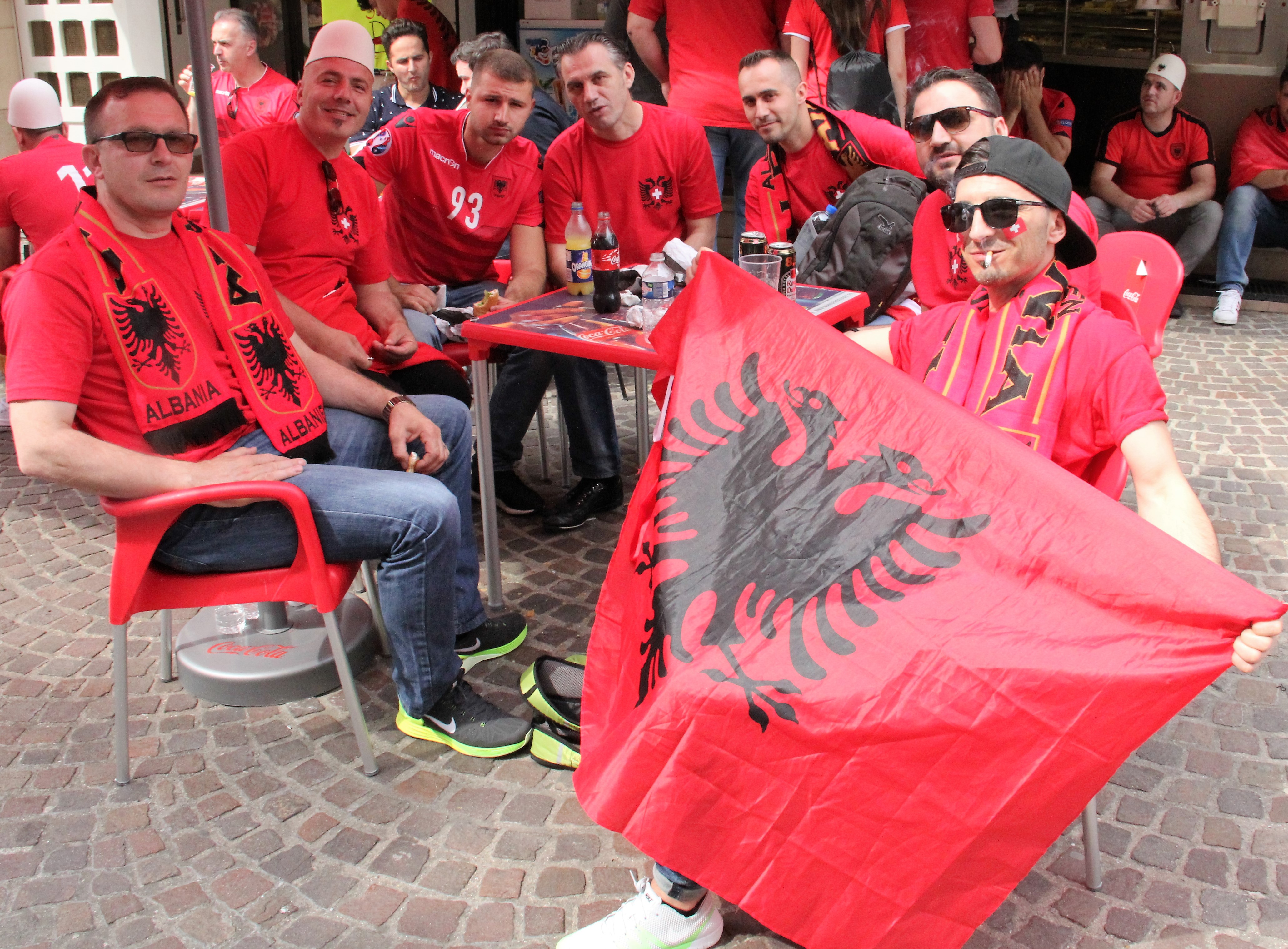 Pak orë para ndeshjes që po cilësohet si historike Shqipëri-Zvicër atmosfera në zemrën e qytetit Lens po i afrohet pikës së vlimit. Tifozët shqiptarë të ardhur nga gjithë Evropa e më gjerë kanë vazhduar festën e filluar nga mbrëmë dhe i kanë dhënë asaj edhe më shumë zjarr e emocion. albinfo.ch është në vazhdimësi në mesin e tyre. Janë së paku dy grupe të mëdha tifozësh që kanë zënë dy nga sheshet në zonën e këmbësorëve në Lens të cilët po këndojnë dhe pothuaj në gjendje transi po shprehin ngazëllimin e tyre me arritjen e kombëtares shqiptare për herë të parë në një kampionat evropian.