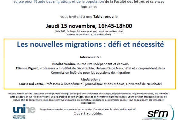 L’Académie du journalisme et des médias de la Faculté des sciences économiques et le Forum suisse pour l’étude des migrations et de la population de la Faculté des lettres et sciences humaines