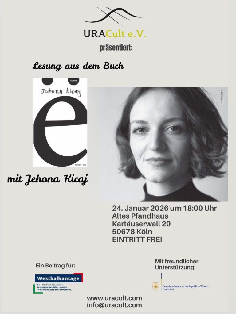 Sipas Shoqatës UraCult në Bonn, leximet letrare janë pjesë e programit “NRW – West Balkan Days 2026” dhe mbështeten nga Konsullata e Përgjithshme e Republikës së Kosovës në Düsseldorf.