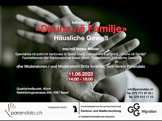 Shoqata Parandalo, në kuadër të projektit pjesë të Departamentit të policisë të Kantonit Baselstadt “Ndalo dhunën” organizon ligjëratë me temën “ Dhuna në familje” si një nga dukuritë më të përhapura dhe një nga krimet më të paraportuara në shoqërinë tonë. Dhuna në familje është një dukuri negative që është trajtuar më së shumti si një problem individual, që konsiderohet se i përket vetëm anëtarëve të familjes dhe jo shoqërisë, përcjell albinfo.ch.