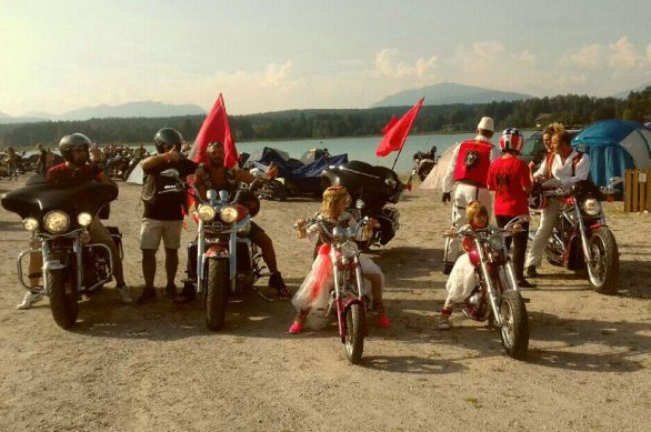 “E gjithë familja ime jemi të pasionuar pas Harleyt. Vajzat e mia kanë ngasur motor që 2-3 vjet. Ne kishim dëgjuar se do të mbahet në Austri Harley Parade dhe së bashku me disa miq shqiptarë dhe me familjet e tyre vendosëm të shkojmë për kamping, por edhe të marrim pjesë në këtë festival motorësh. Pasi u vendosëm në Austri, patëm dëshirë të bëjmë një xhiro me motorë në parkingun ku ishim vendosur. Dëshironim të gjithë së bashku dhe të bëjmë disa fotografi me flamuj dhe veshje shqiptare për t’i ruajtur si kujtim. Një person zyrtar, i cili ishte për të rregulluar komunikacionin, kur na ka parë, ka mbetur i fascinuar, ka bllokuar gjithë rrugën dhe na ka ftuar që të dilnim në rrugë. Në fakt, pa vetëdijen tonë ne ishim duke lëvizur në rrugë të ndaluar. Ne nuk e dinim se ishte e ndaluar”, thotë motoristi Kaci.