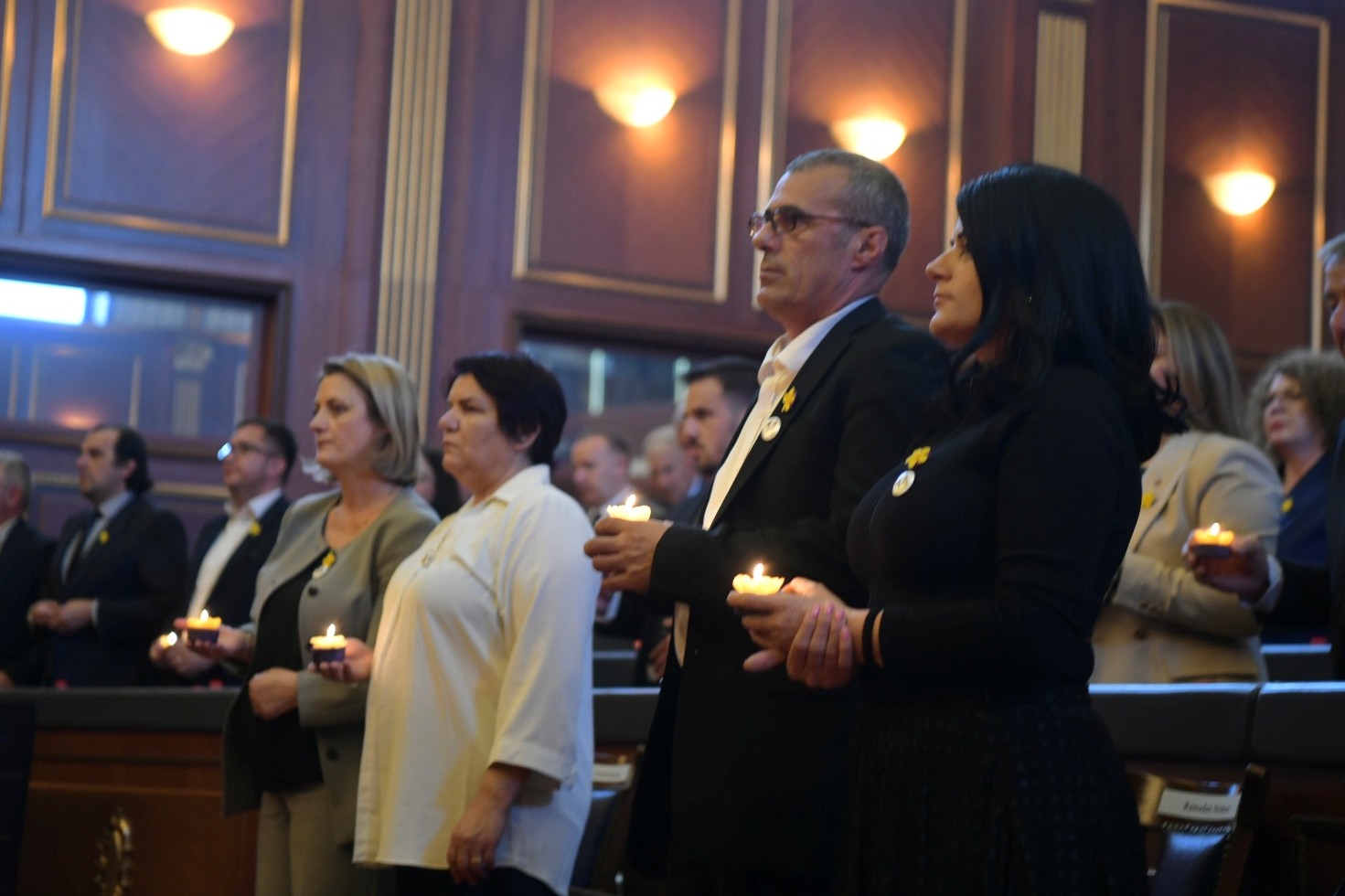 Rushiti theksoi se simbolika e qiririt, e punuar nga duart e grave dhe e shoqëruar me lulen e anemonës, nuk është vetëm një akt përkujtimi, por krijon një hapësirë të sigurt ku zërat e të mbijetuarve dëgjohen edhe në institucionet më të larta. Ajo nënvizoi se kjo hapësirë ka ndihmuar në thyerjen e tabuve të kahershme, përfshirë edhe realitetin e heshtur për vite me radhë: dhunën seksuale ndaj burrave dhe djemve gjatë luftës.
