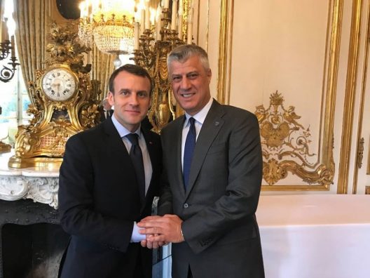 Presidenti i Republikës së Kosovës, Hashim Thaçi është pritur sot nga presidenti i Francës, Emmanuel Macron në Pallatin Elysee, me të cilin ka biseduar për vendet që synojnë integrimin në BE.