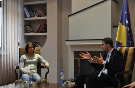 Ai u takua me xhudisten Kelmendi dhe trajnerin e saj, Driton Kuka, me ç`rast kanë biseduar për sukseset që Majlinda i ka arritur këto dy javët e fundit, si dhe për angazhimet në të ardhmen, e që kanë synim pjesëmarrjen e sportistëve kosovarë në Lojërat Olimpike “Londra 2012”.
