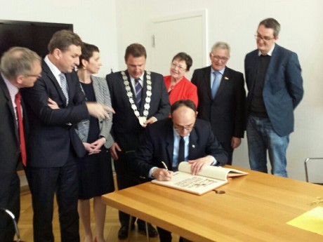 “Komuniteti shqiptar është pasuri e përbashkët e Kosovës dhe Gjermanisë”, tha ndërt të tjera ministri kosovar i Diasporës. Makolli, po ashtu u ftua nga nikoqirët e vizitës, që të nënshkruhet në Librin e Artë të këtij qyteti.