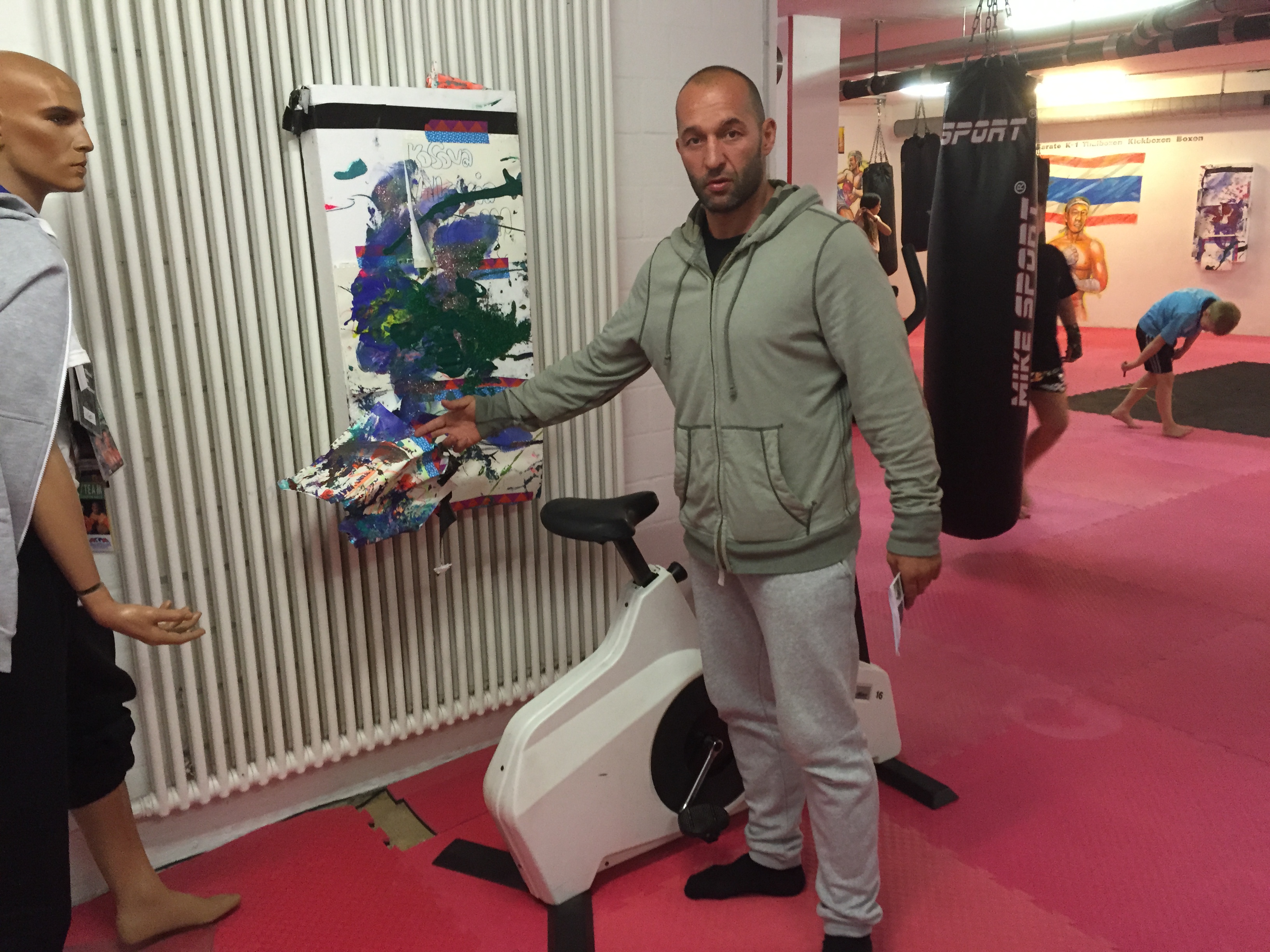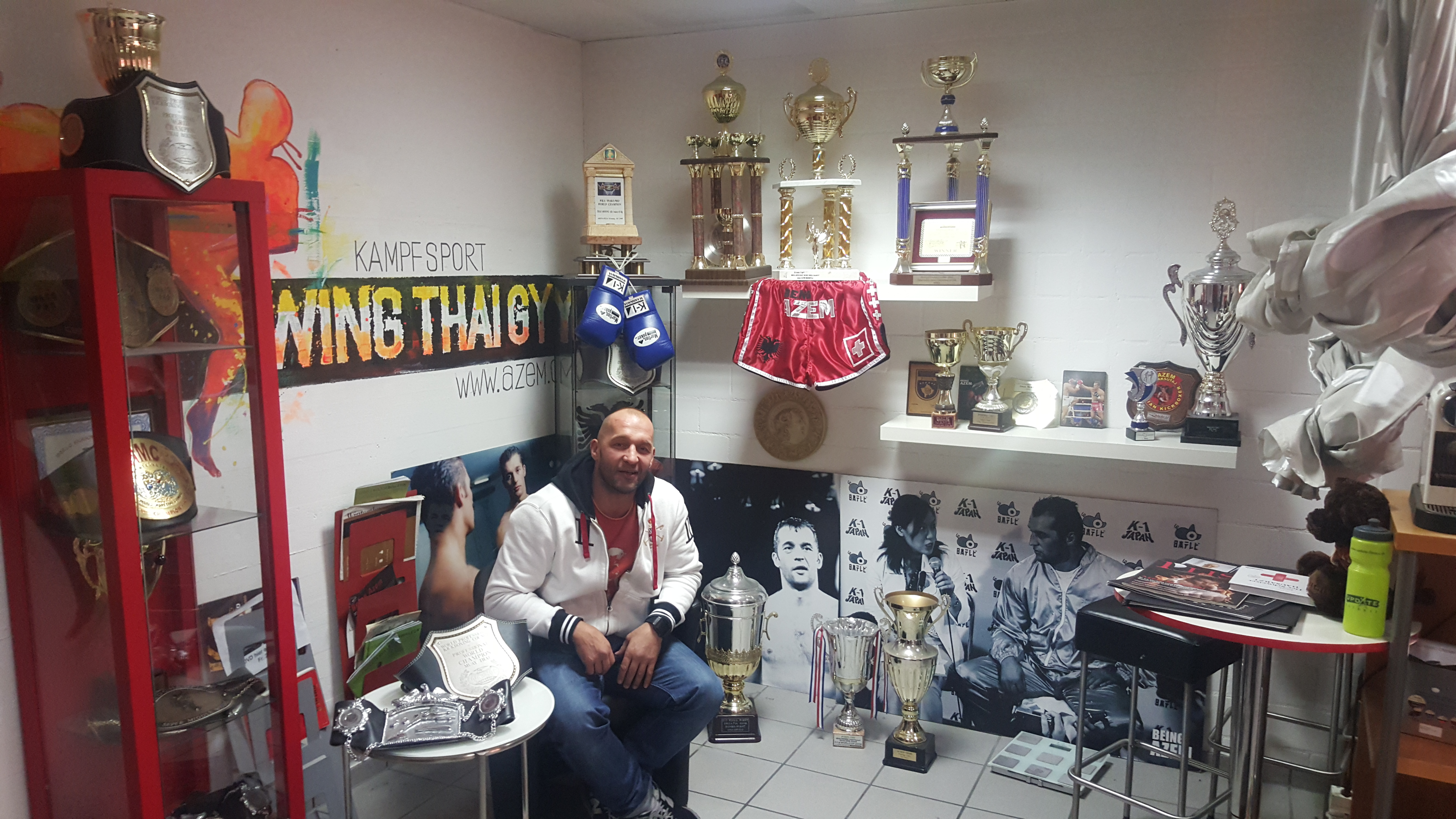 “Me 14 vjet kam filluar të merrem me thaiboks, me 15 vjet kam qenë kampion i Zvicrës, me 16 vjet kampion i botës, më i riu i të gjitha kohëve ndërsa si 18 vjeçar e kam blerë këtë lokal për stërvitje”, thotë për albinfo.ch me një dozë mburrjeje legjitime Azem Maksutaj ndërkohë që inspekton vogëlushët të cilët janë duke u stërvitur në ringun e improvizuar në shkollën e tij. Ai shpeshherë ndërpret bisedën për t`iu dhënë instruksione drejtpërdrejt fëmijëve ose njërit prej asistentëve të tij që punojnë me ta.