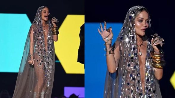 Këngëtarja 33-vjeçare, e cila hyri në histori si personi i parë që prezantoi për të tretën herë këtë ngjarje të madhe, bëri një shfaqje mbresëlënëse në ndryshimin e saj të parë të veshjes.