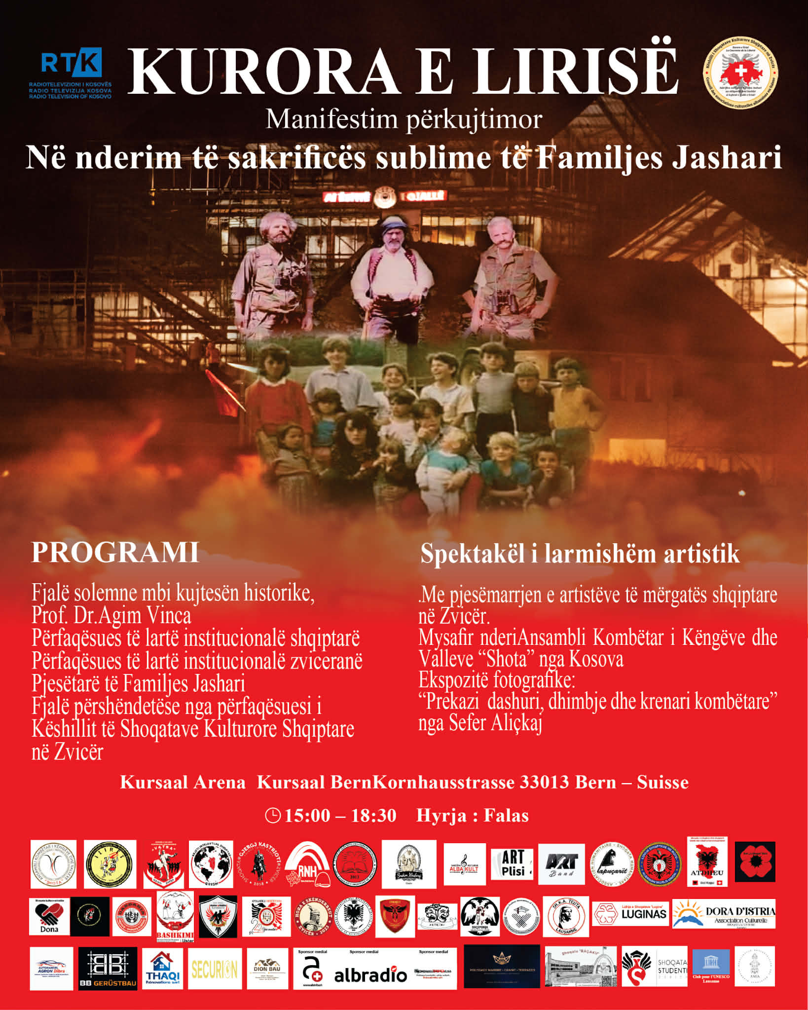 “Manifestimi përkujtimor me program artistik “Kurora e Lirisë” që do të mbahet më 14 mars në Bernë, përfaqëson një akt të rëndësishëm nderimi ndaj sakrificës sublime të Familjes Jashari dhe të gjithë atyre që kontribuan në rrugëtimin drejt lirisë dhe dinjitetit të popullit shqiptar.