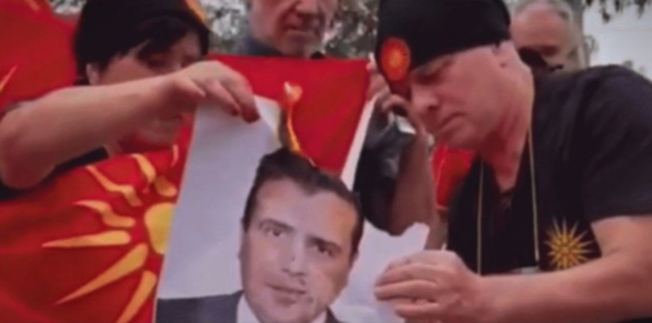 Protestues maqedonas kanë djegur fotografinë e kryeministrit Zoran Zaev në protestën që u mbajt në Melburn të Australisë.