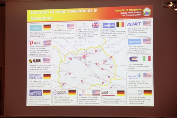 Po ashtu rreth klimës së bërjes biznes ka folur edhe ministri për investime, Arlind Zeqiri. Ai është ndalur më shumë në zonat që ka krijuar qeveria për investime të huaja, me gjithë infrastrukturën e nevojshme të siguruar. Zeqiri ka theksuar se serioziteti i Maqedonisë në fushë të tërheqjes së investimeve të jashtme tregohet me faktin ajo ka ngritur 33 përfaqësi në vende të ndryshme të botës që angazhohen vetëm për të sjellë investime në vend, raporton albinfo.ch nga forumi. Vetë Zeqiri ka qenë drejtues i një përfaqësie të tillë në Bernë.