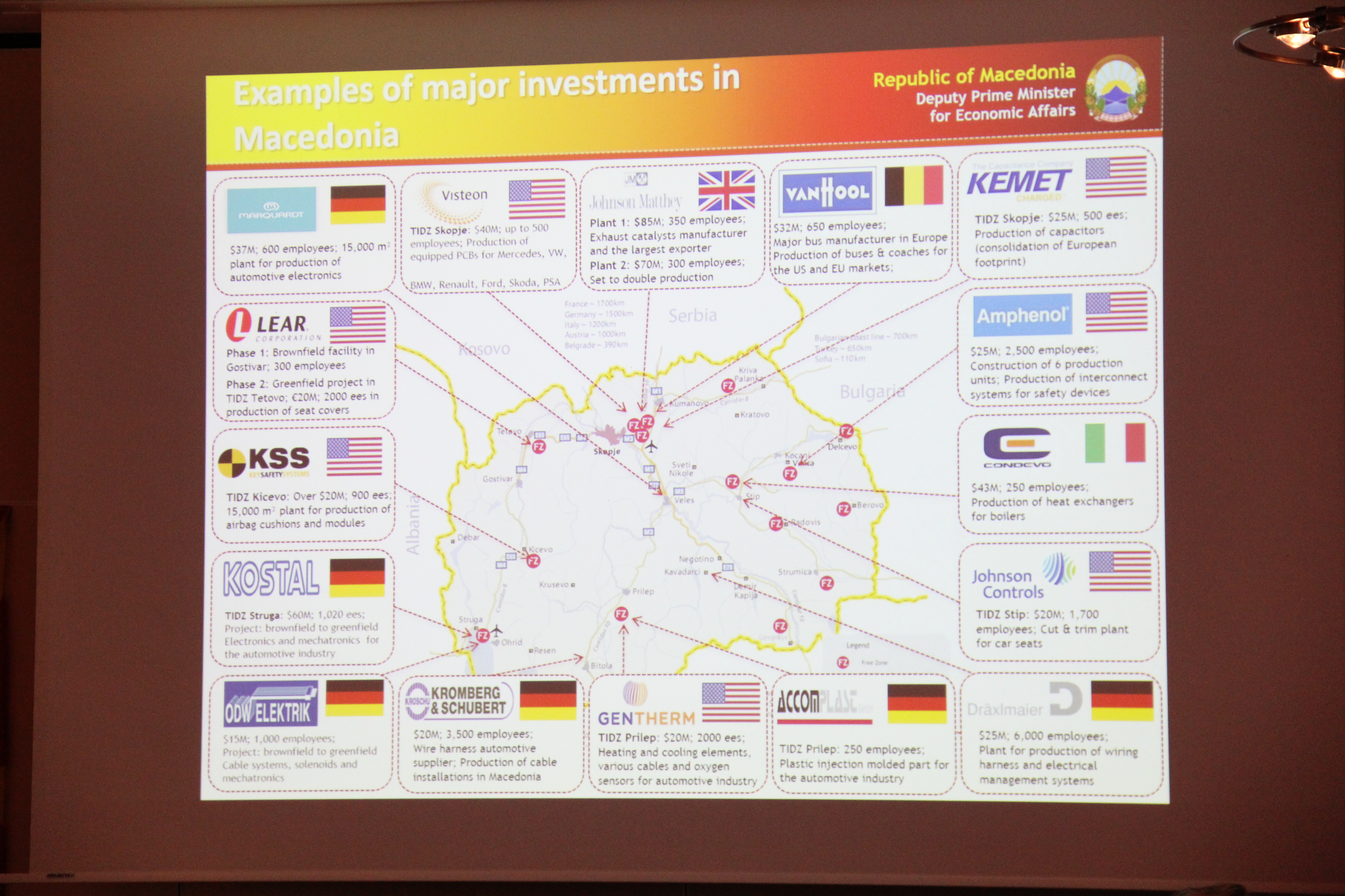 Po ashtu rreth klimës së bërjes biznes ka folur edhe ministri për investime, Arlind Zeqiri. Ai është ndalur më shumë në zonat që ka krijuar qeveria për investime të huaja, me gjithë infrastrukturën e nevojshme të siguruar. Zeqiri ka theksuar se serioziteti i Maqedonisë në fushë të tërheqjes së investimeve të jashtme tregohet me faktin ajo ka ngritur 33 përfaqësi në vende të ndryshme të botës që angazhohen vetëm për të sjellë investime në vend, raporton albinfo.ch nga forumi. Vetë Zeqiri ka qenë drejtues i një përfaqësie të tillë në Bernë.