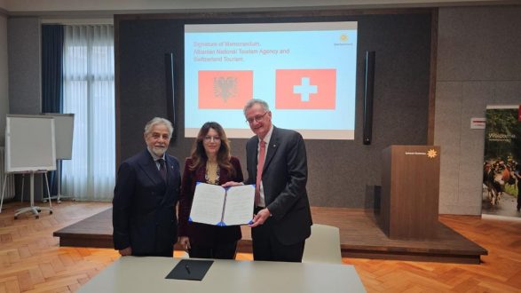 Theksohet se marrëveshja u nënshkrua nga Drejtorja e Përgjithshme e Agjencisë Kombëtare të Turizmit të Shqipërisë (AKT), Zana Çela-Rama, dhe Z. Federico Sommaruga, Drejtor i Tregjeve në Zhvillim dhe Projekteve Speciale në Turizmin Zviceran (ST).