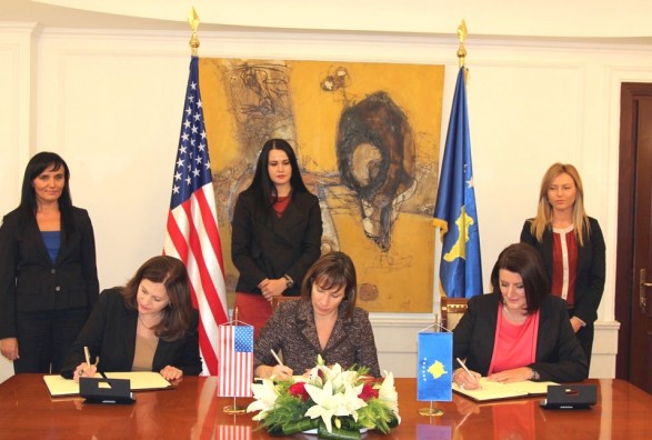 Presidentja e Kosovës, Atifete Jahjaga dhe ambasadorja e Shteteve të Bashkuara të Amerikës në Kosovë. Tracey Ann Jacobson nënshkruan një marrëveshje ndërshtetërore për Asistencë ndërmjet Republikës së Kosovës dhe Shteteve të Bashkuara të Amerikës, në fushën e zhvillimit ekonomik dhe punësimit të të rinjve, në sundim të ligjit, në forcimin e qeverisjes dhe institucioneve demokratike.