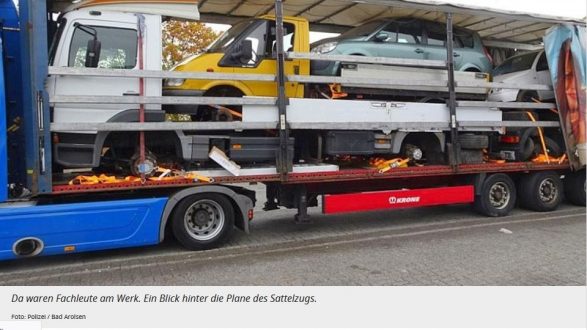 Pas hetimeve të para të policisë, vozitësi ishte nisur nga Esseni, në drejtim të Bullgarisë. Atje ai ka dashur t`i transportojë automjetet e blera nga një shtetas gjeorgjian dhe një shqiptar. Por, ata do të mbesin me gishta në gojë, informon më tej Albinfo.ch. Oficerët policorë, maunën e ngarkuar dhe ngarkesën e tij e shoqëruan deri një vendparkim, duke ia ndaluar udhëtimin e mëtutjeshëm. Veçanërisht pasi që automjetet kishin edhe defekte të sigurisë.
