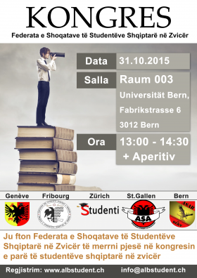 Federata e Shoqatave të Studentëve Shqiptarë në Zvicër organizon më 31 tetor Kongresin e parë për studentët dhe Alumni (të diplomuarit) shqitarë në Zvicër.