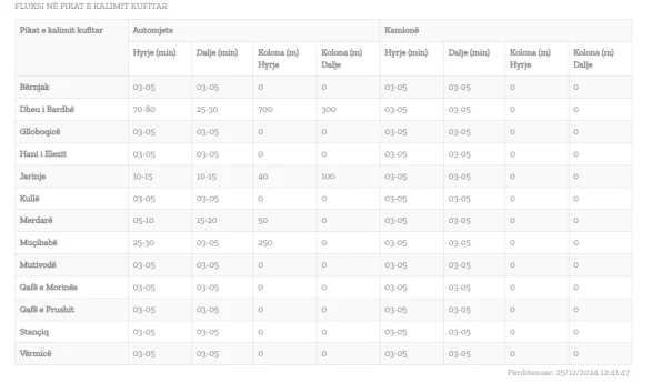 Derisa në Muçibabë pritjet janë 25 deri në 30 minuta, kurse në pikat e tjera kufitare pritjet varijojnë nga 3 deri në 15 minuta.