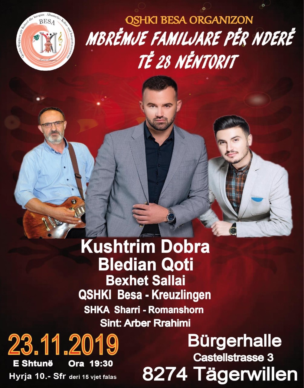 QSHKI Besa më 23.11.2019 nga ora 19:00 organizon Mbrëmje Familjare për nder të 28 Nëntorit.