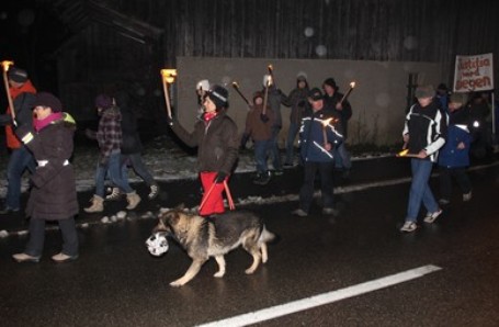 Protestuesit pastaj kanë marshuar drejt pyllit, ku i priste “Justitia”, një simbol i drejtësisë dhe një rimorkio e improvizuar me ushqime! Po kështu aty kishte edhenjë orkestër e vogël frymore, shkruan “Aargauer Zeitung”.