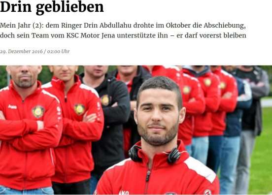 Drin Abdullahu nga Kosova është kërcënuar me dëbim, por ekipi i tij i mundjes KSK Motor Jena e ka mbështetur atë, dhe ai mund të qëndrojë tani për tani, shkruan ‘thueringer-allgemeine.de’.