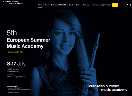Akademia e Muzikës – ESMA 2016 është nën udhëheqjen artistike të z. Desar Sylejmani dhe organizohet në bashkëpunim me GjakovaBasel, si implementues lokal. Për më tepër vizitoni webfaqen: http://www.european-music-academy-ks.com/