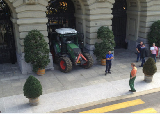 Pronari kishte arritur me milimetra të parkonte traktorin para hyrjes kryesore të qeverisë zvicerane.